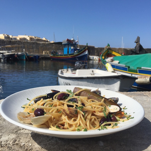 Gozo is for seafood lovers. If you’re in Gozo, drop by at Murella’s in Marsalforn where they do a mean Neapolitan pizza ( starting from €7) or a delicious Spaghetti ai Frutti di Mare ( €10.50 )with razorclams, mussels, clams and in a tomato, garlic and black olive sauce.