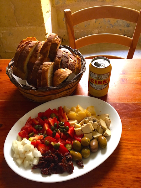 Situated inside the walls of the citadel serving delicious a changing selection of fresh food and homegrown wine, Ta Rikardu is a Gozitan experience not to be missed. I sampled the Gozitan platter here which was a mix of 3 different and excellent varieties of local cheese, tomatoes, olives, sundried tomato capers, bread etc. ( €8) washed down with some of the local cisk.